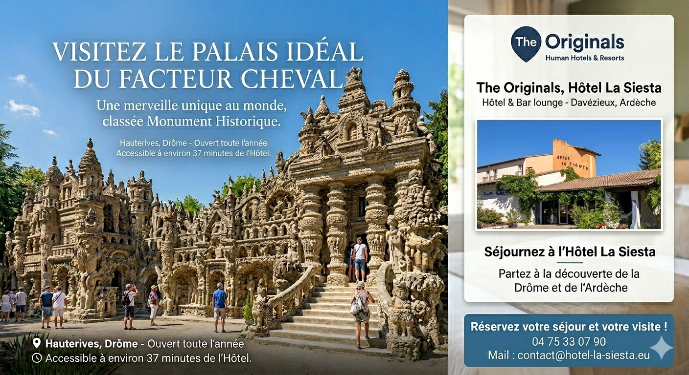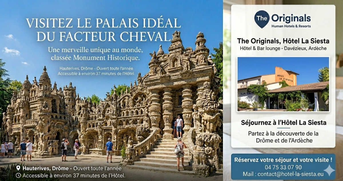 Seuls, en famille ou en groupes, visitez le fabuleux Palais du Facteur Cheval à 30 minutes de l’hôtel